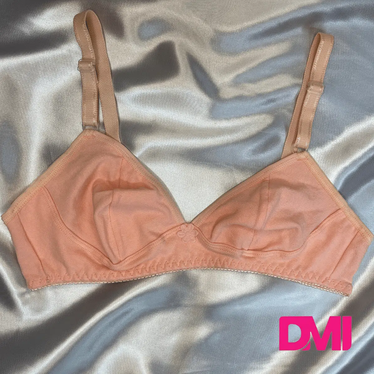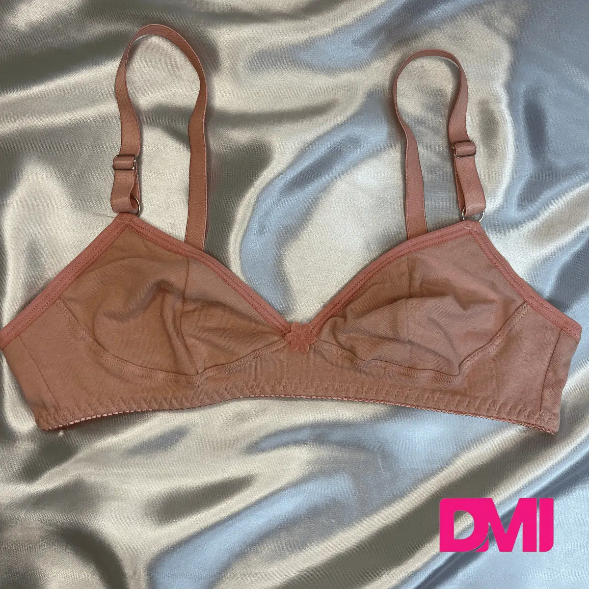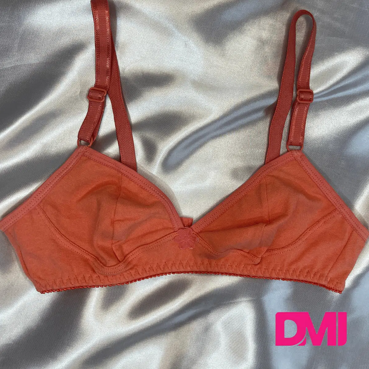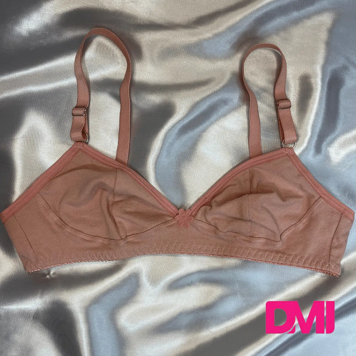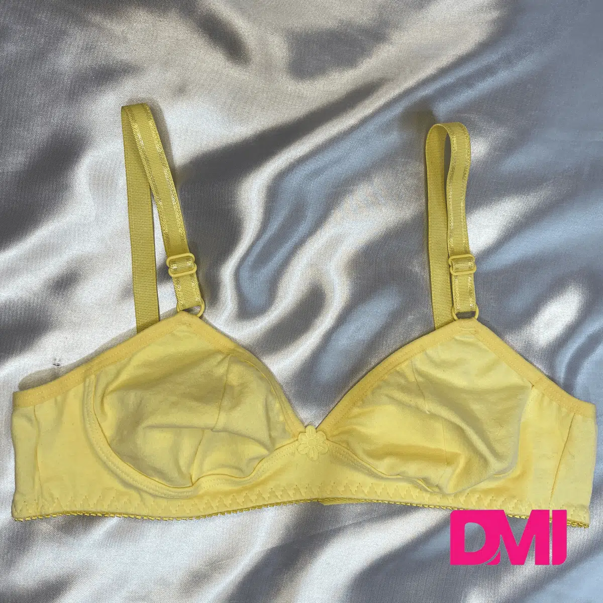 O design é simples e confortável, com aros para suporte. As alças são ajustáveis, e há um pequeno aplique de flor no centro, que adiciona um toque delicado. É uma peça básica, ideal para uso diário.