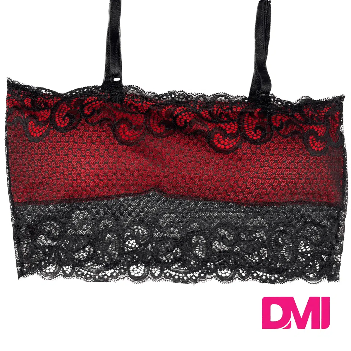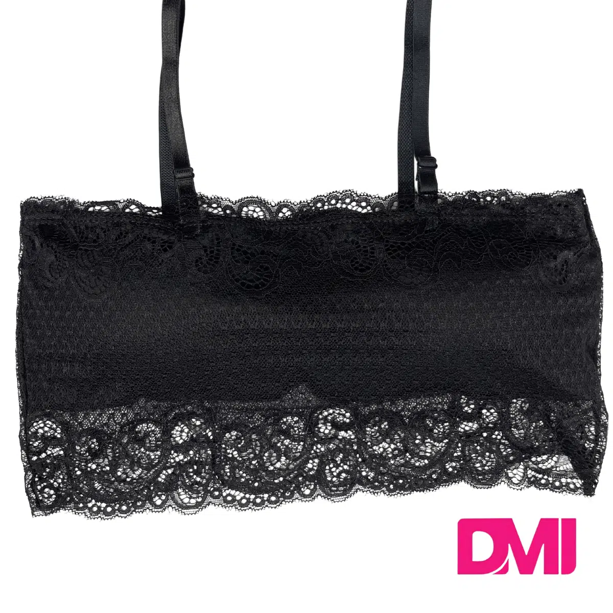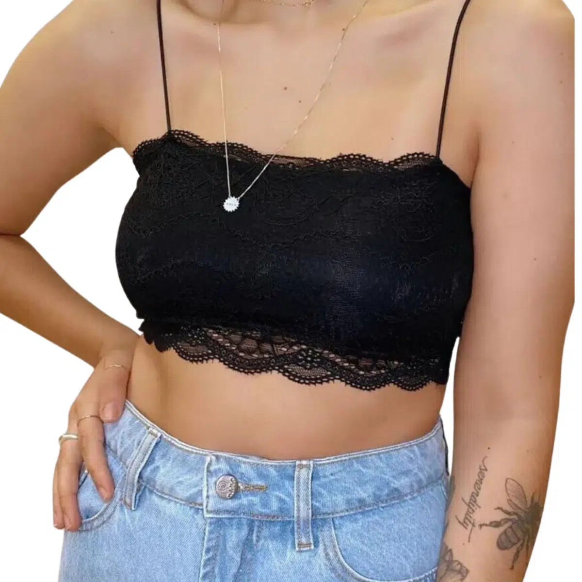 Top faixa de renda com alças finas ajustáveis, delicado e confortável. Perfeito para complementar looks casuais ou sofisticados.